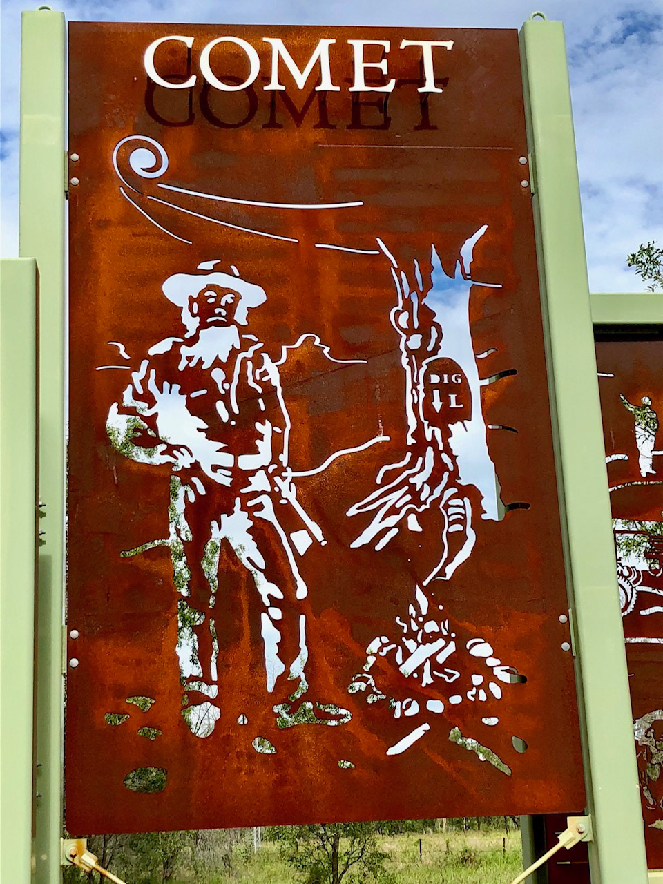 I worked with Central Queensland Regional Council over many years on commissioned Public Artworks including street banners and Town Entrance Statements for Emerald, Rolleston, Springsure, Capella, The Gemfields, Blackwater, Comet and Dingo. I also exhibited works related to the area including mining and agriculture at the Emerald regional gallery.